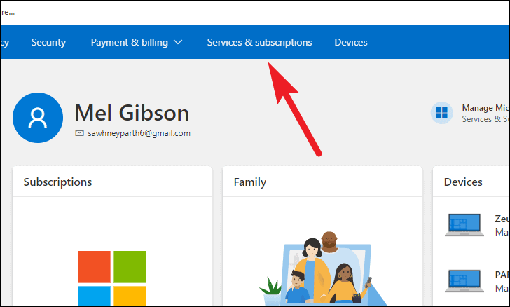 Then, click on the ‘Services & subscriptions’ tab on the webpage.