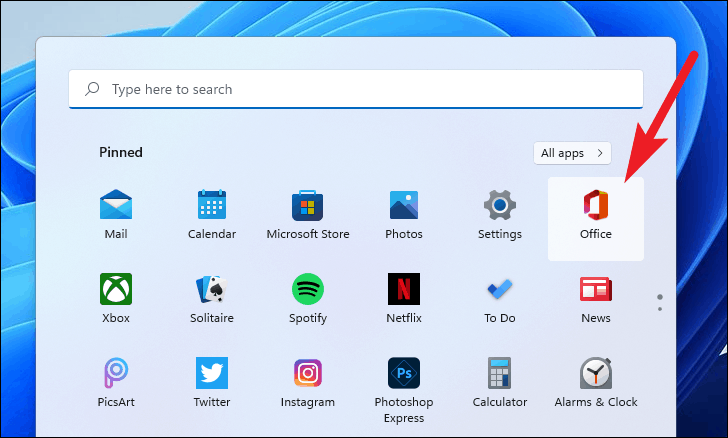 Launch the ‘Microsoft Office’ app from the Start Menu on your Windows computer.