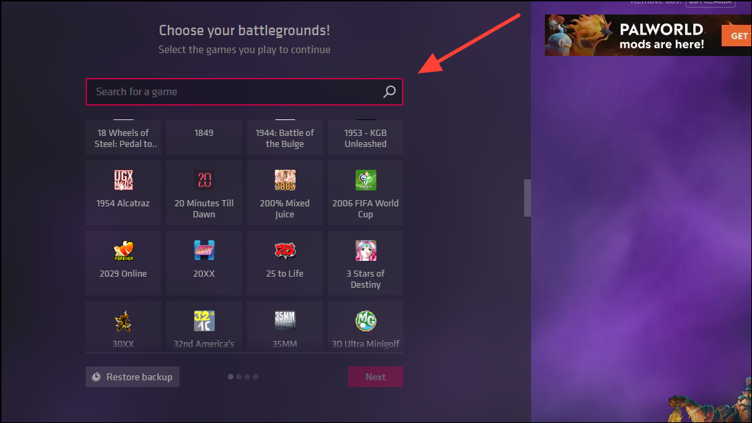 - Once it launches, you will see a dashboard with some of the most popular games that the app supports. Use the search bar at the top to search for a particular game.