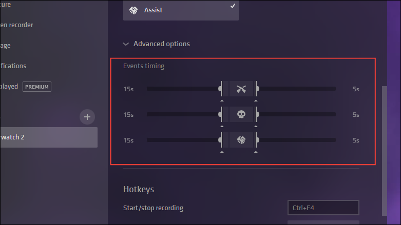 With Outplayed, customizing highlight events is not only possible but also quite easy. It allows controlling what happens before and after the event to be recorded.