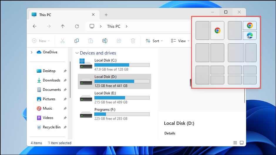 Snap Layouts allow you to quickly arrange windows side-by-side or in other structured patterns, making multitasking simpler and more organized.