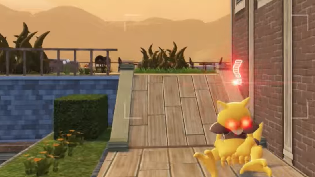 Step 3: Climb to the roof and check the Abra. If it does not have glowing red eyes, return to the bench and repeat the process.