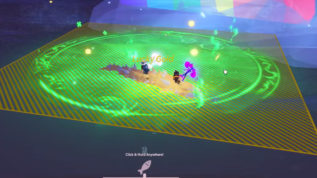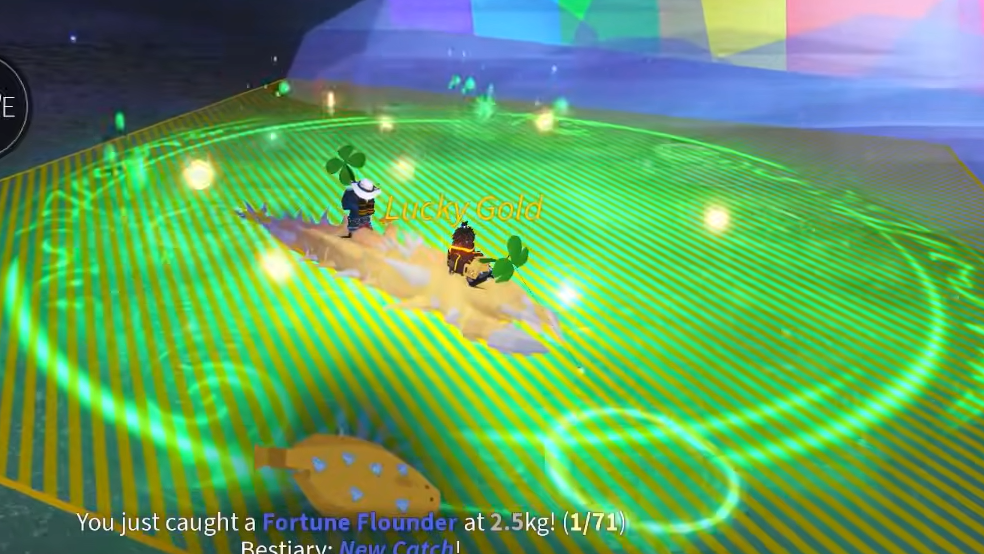 There is no physical location on the Fisch map called Shamrock Seas. The name refers exclusively to the Bestiary collection tied to the St. Patrick's event. Most of the fish you need are caught in the Lucky Gold Pool, a temporary body of water that appears at the base of the Lucky Rainbow each time the Rainbow event fires. The Rainbow event triggers every 45 minutes, and a server-wide notification in the Event section tells you exactly where it has landed. Travel there quickly — other players on the server will be competing for the same pool and the pot of gold nearby.
