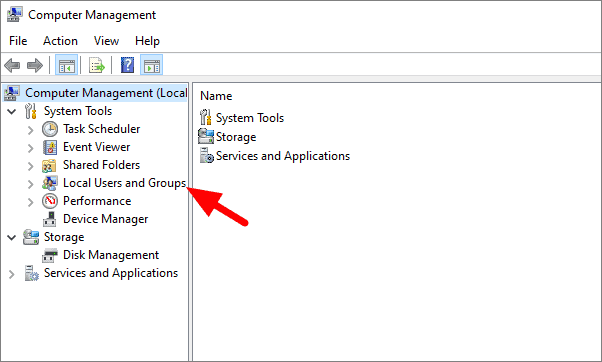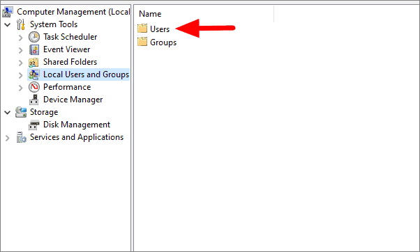 In computer management, click on ‘Local Users and Groups’ under sytem tools. It is on the left side of the screen.