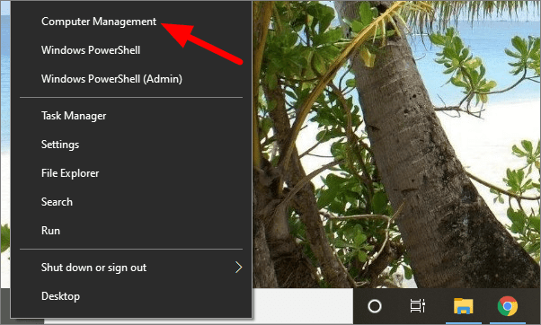 Right click on the windows sign at the bottom left corner of the screen and select ‘Computer Management’.