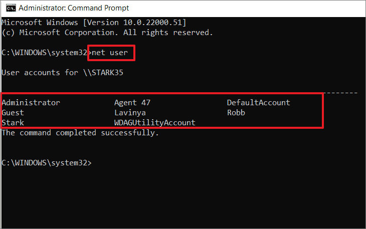 Step 2: To list all local user accounts, type the following command and press Enter: