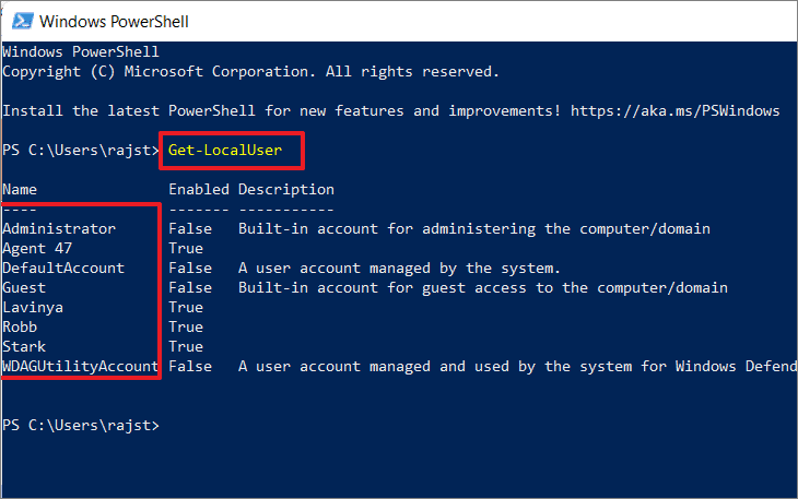Step 3: To view all local user accounts on your system, type the following command and press Enter: