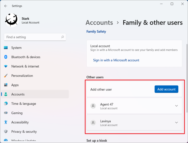 Types of Accounts in Windows 11