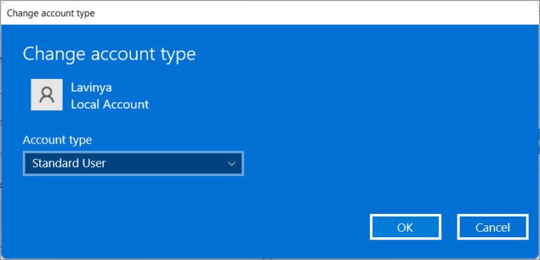 Using User Accounts (netplwiz) to Change Account Type