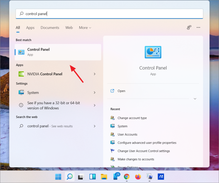 Step 1: Open the Control Panel by typing Control Panel in the Windows Search bar and selecting it from the results.