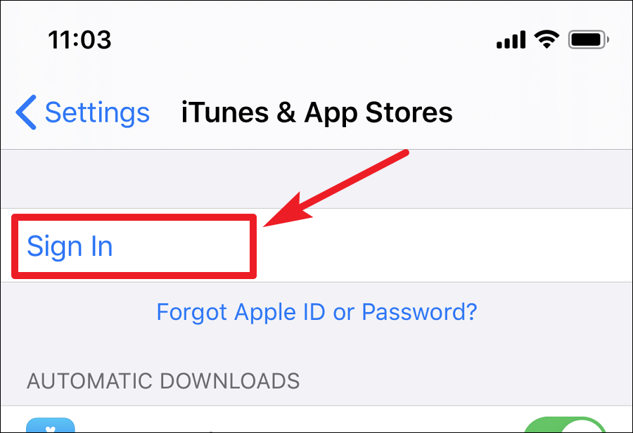 Without going back, tap on Sign In in the same menu where Apple ID information used to be and enter the login details to sign in using a different ID into the App Store.
