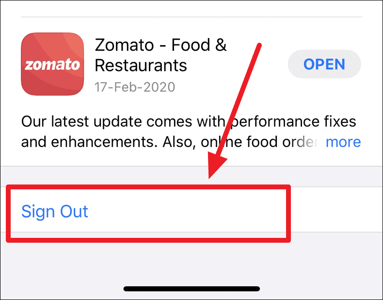 Then, scroll down to the very end of the menu that will open and tap the ‘Sign Out’ button.