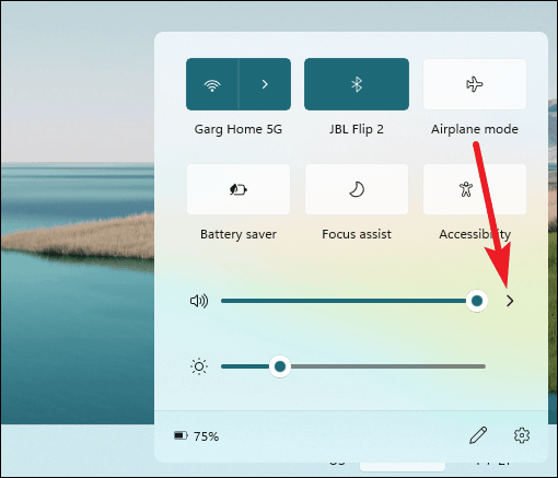 - In the menu that appears, click the arrow (>) next to the volume slider to access audio settings.
