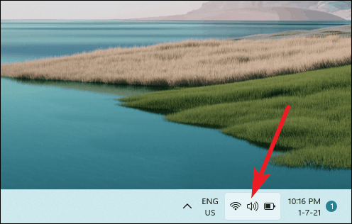 - Click on the Sound icon. In Windows 11, the sound, Wi-Fi, and battery icons are grouped together, so clicking any of them will open the same menu.