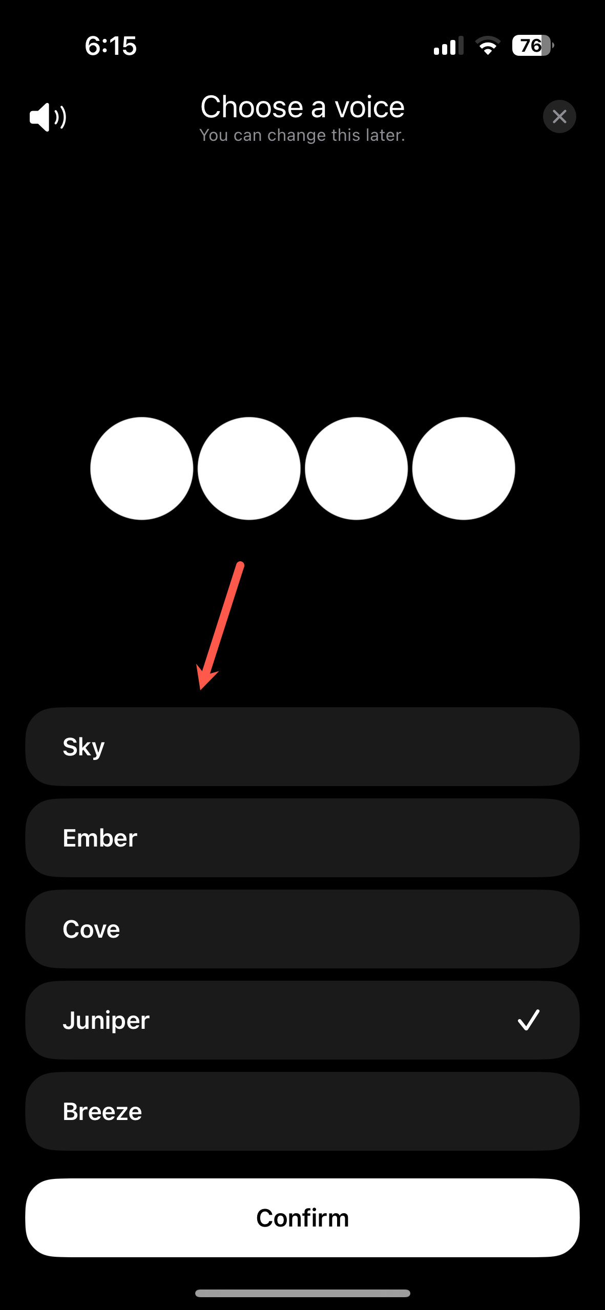 - Then, select a voice from the next page; you can also hear a preview of the sound. Finally, tap on 'Confirm'.