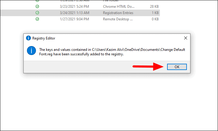 You will now receive a confirmation from Registry Editor that the changes have been applied. Click on ‘OK’ to close the dialog box.