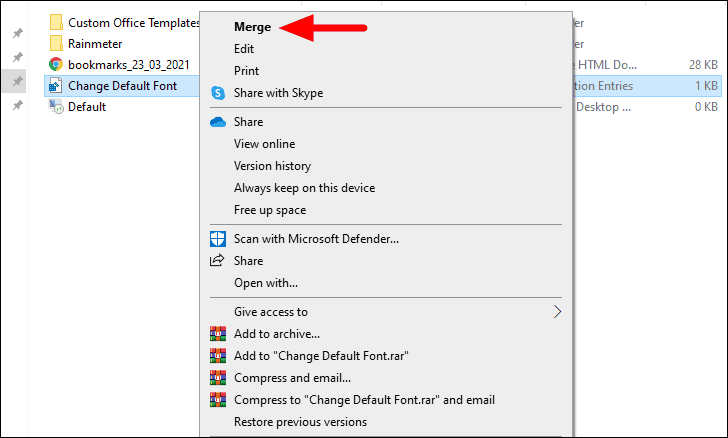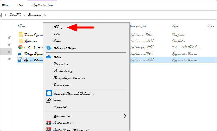 Next, right-click on the file you created earlier and select ‘Merge’, the first option in the context menu.
