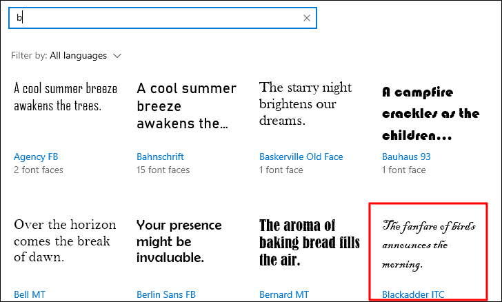 Chose a font of your preference from the list. For this article, we will choose ‘Blackadder ITC’, however, you can choose any of the available options. Just remember the font name or jot it down somewhere so that you can use it in the following steps.