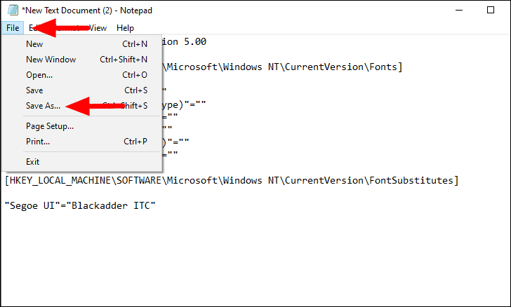 After you have entered the code, click on ‘File’ menu and select ‘Save As’ from the menu. In some cases, the new font might not be very clear, therefore you will have to use your experience and trust your instinct while toggling through the system.