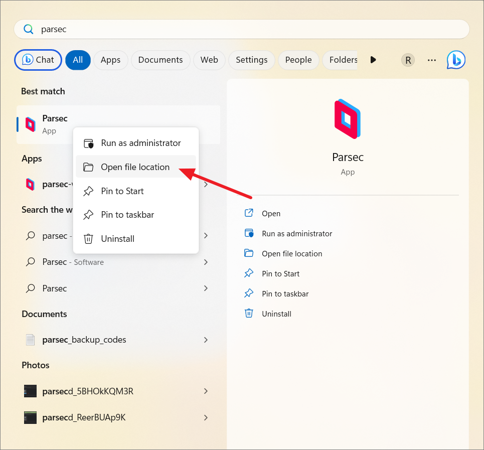 Step 1: Open the 'Start' menu and search for the application. Right-click on it and select 'Open file location.'