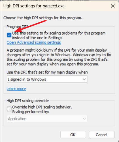 Step 4: Under 'Program DPI,' check the box for 'Use this setting to fix scaling problems for this program instead of the one in Settings.' This tells Windows to use a specific DPI setting for this application.