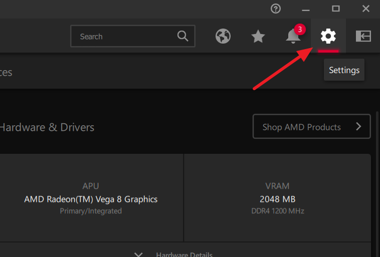 Step 3: In the Radeon Software, click on the 'Settings' icon in the top right corner.