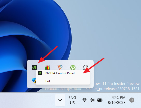 Step 1: Click on the Windows system tray, right-click the NVIDIA icon, and select 'NVIDIA Control Panel.'