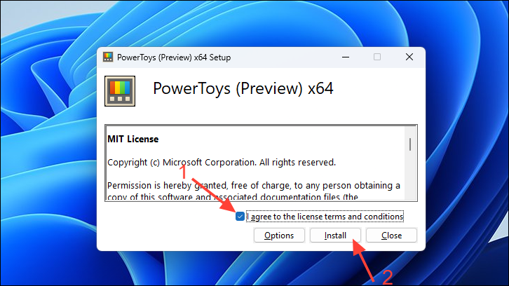 - On the installer window, check 'I agree to the license terms and conditions' and click on 'Install'.