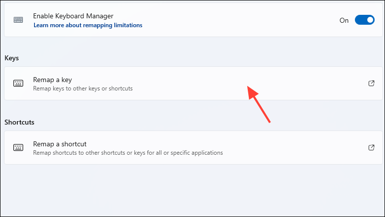 - Click on the 'Remap a key' option. This will open an additional window on your screen.