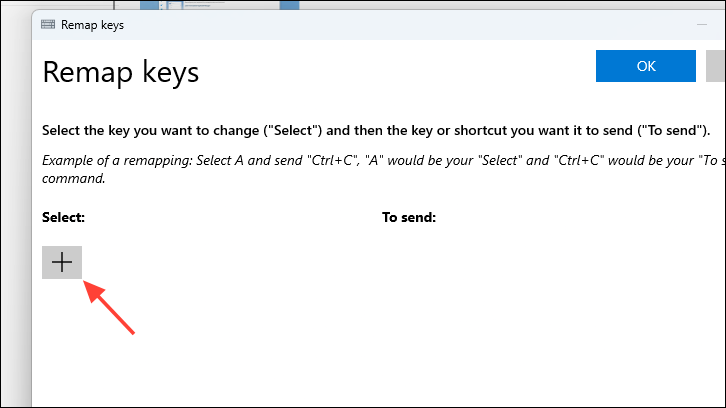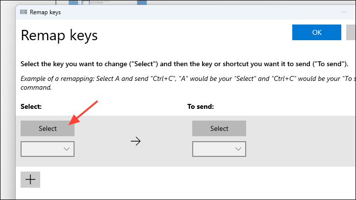 - On the 'Remap Keys' window, click on the 'Select' option.