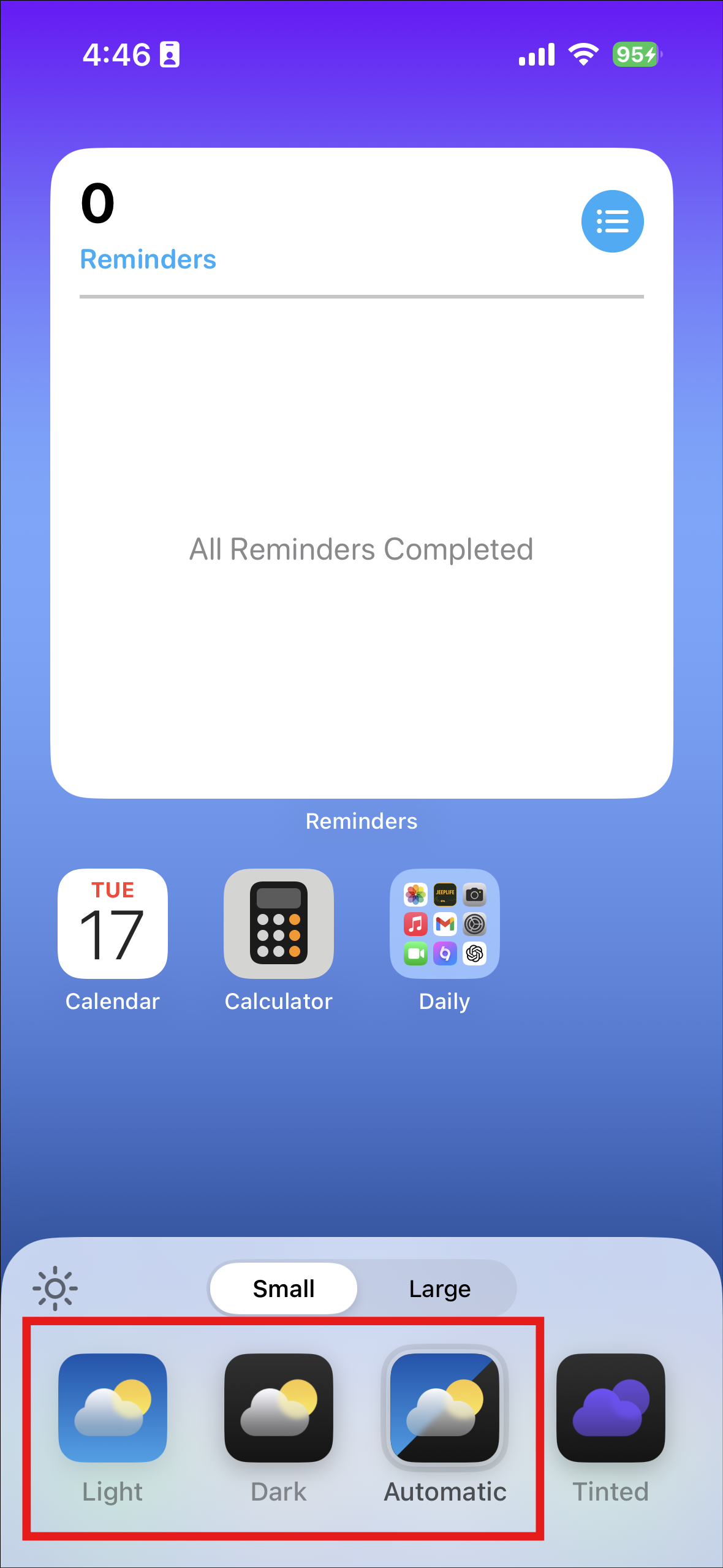 - "Automatic" to switch between dark and light based on your iPhone's dark mode settings