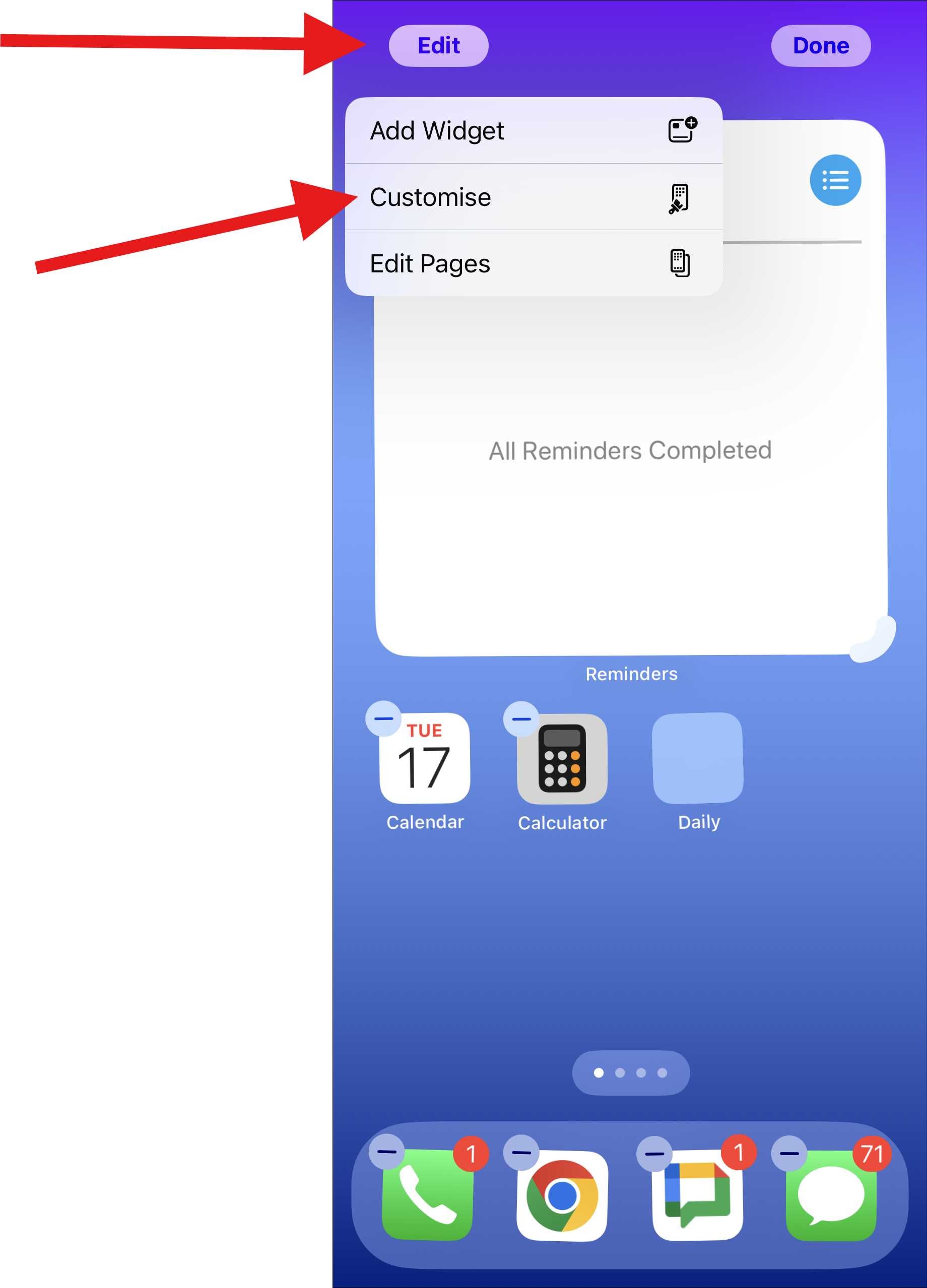 - To apply changes, simply swipe down on the customization menu. Your iPhone will get back to the homescreen with your changes saved.