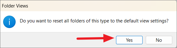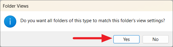 Step 6: Click 'Yes' to confirm applying the view settings to all subfolders. Then, click 'OK' to close the window.