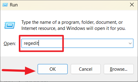 Step 1: Open the Registry Editor by pressing Windows+R, typing regedit, and pressing Enter.