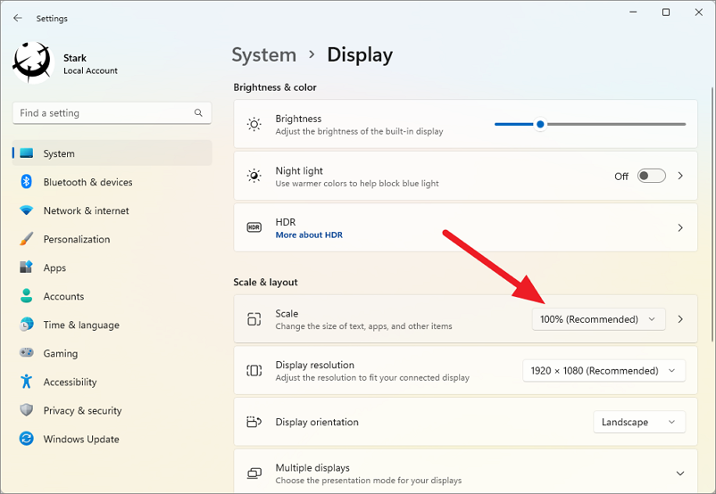 Change the size of all icons using display scaling in Windows 11