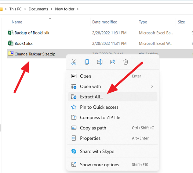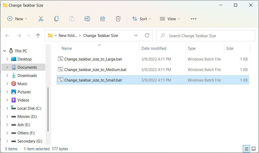 Step 3: In the extracted folder, locate the batch file corresponding to the desired taskbar size.