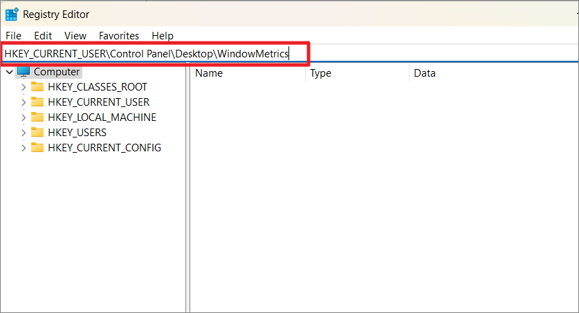 HKEY_CURRENT_USER\Control Panel\Desktop\WindowMetrics