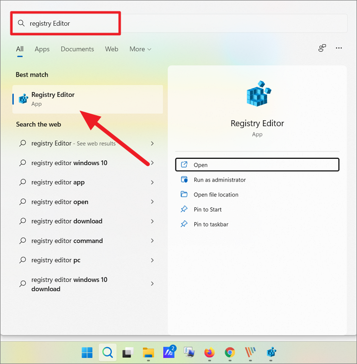 Step 1: Open the Registry Editor by typing regedit in the Windows search bar and selecting the application. Alternatively, press Windows+R, type regedit, and press Enter.