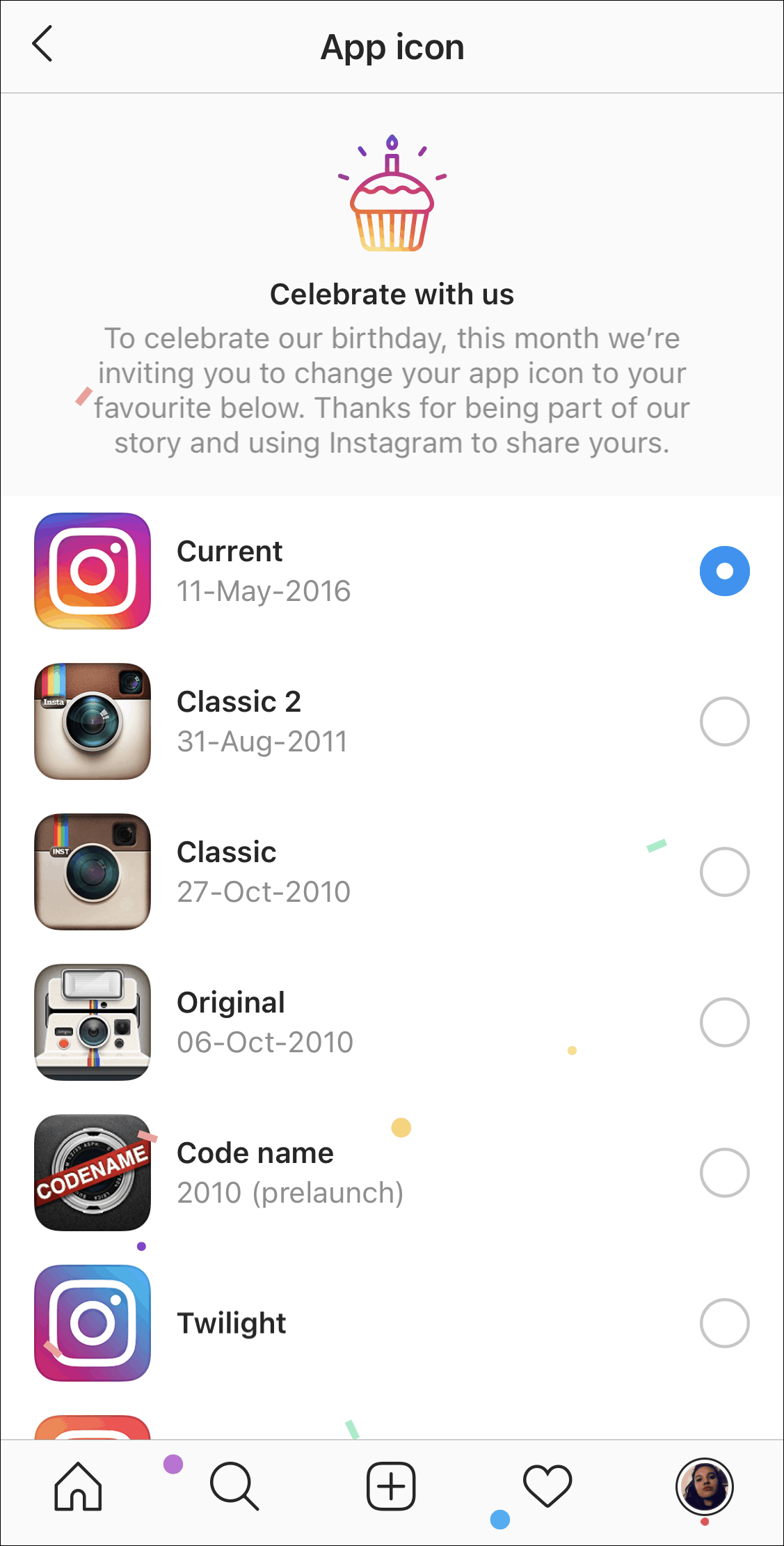 But on this birthday, Instagram has a little nostalgia filled surprise for you. You can change your current Instagram icon to a handful of other icons that includes the classic polaroid icon too. There are also some other choices like a rainbow icon to celebrate Pride, a few more ombre icons in different colors, or monochrome icons. You can have your pick.