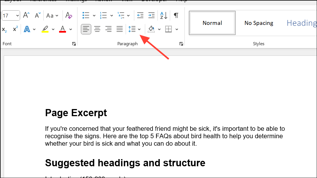 Step 2: Go to the Home tab and locate the Line and Paragraph Spacing button in the Paragraph group. This button typically displays horizontal lines with up and down arrows.