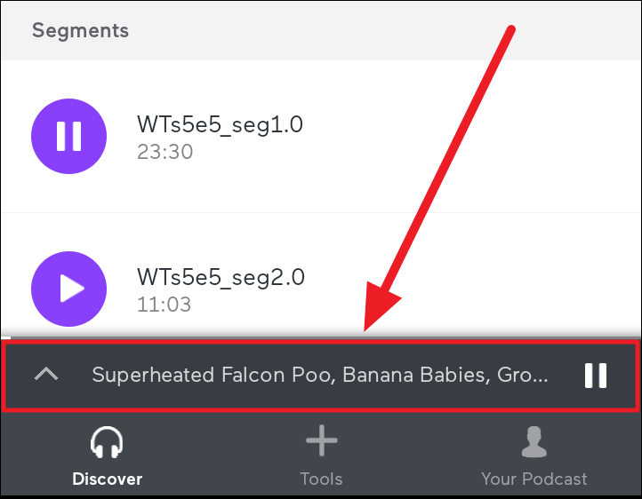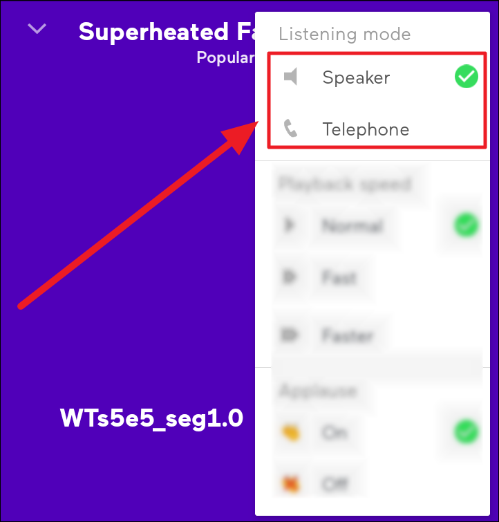 The icon corresponding to your choice of listening mode will reflect right next to the name of the episode or segment.