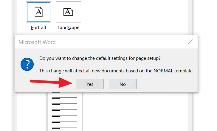 Step 5: A confirmation message will appear. Click Yes to confirm that you want to change the default settings.