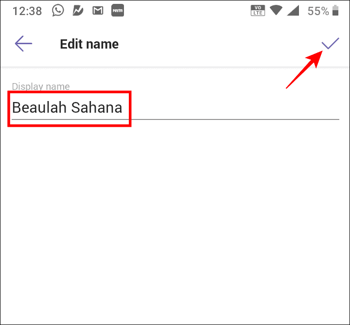 Edit/change your name to your preference and tap either the ‘Save’ or ‘Tick mark’ option on the top-right corner to apply the changes.