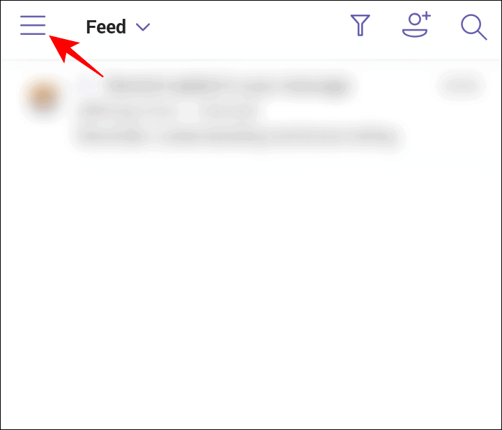 First, open your Microsoft Teams app on your phone and tap on the 3 horizontal lines (the hamburger icon) at the top-most left corner.