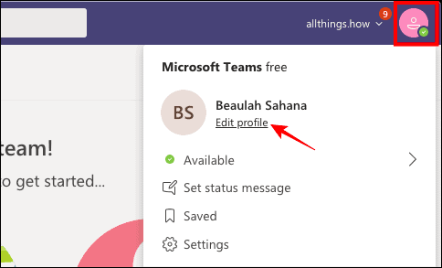 Then, click on the ‘Edit Profile’ link below your name in the Teams menu.