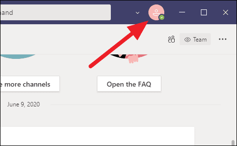 Launch the Microsoft Teams app on your computer and click on the profile icon/picture at the top-right corner of the screen to open the Teams menu options.