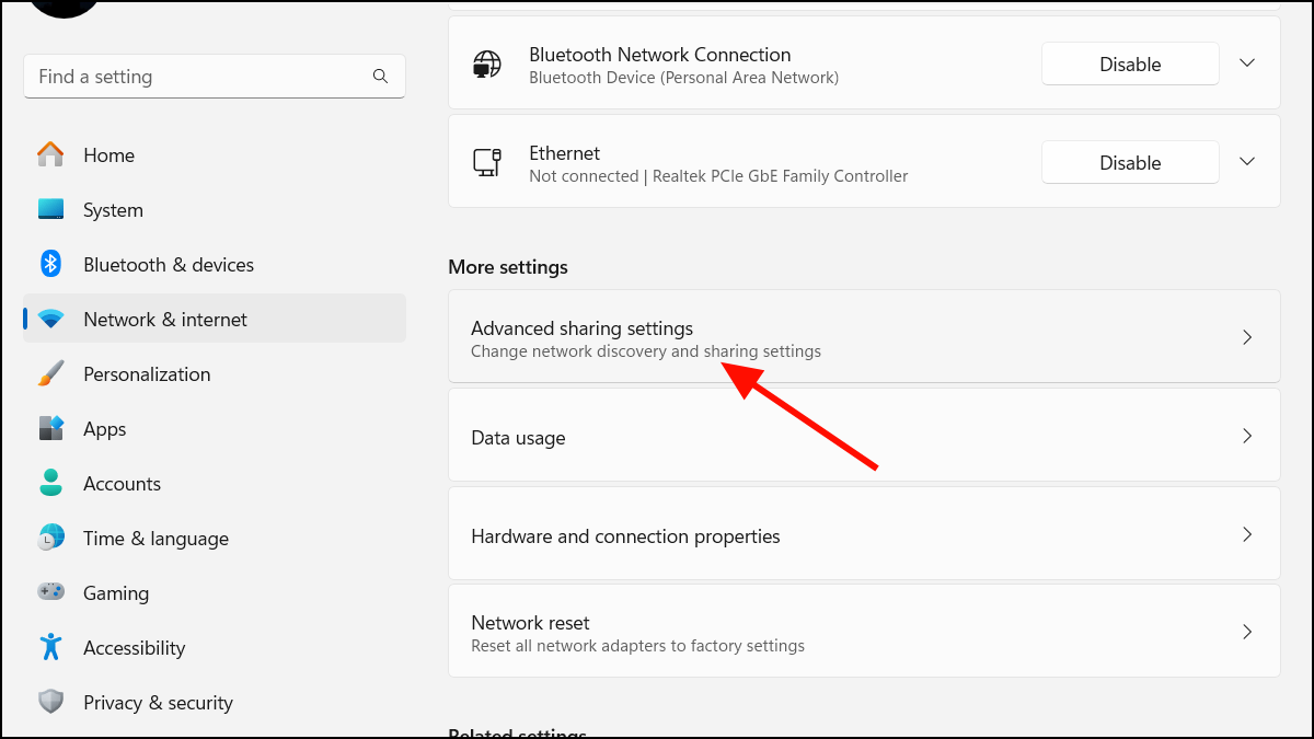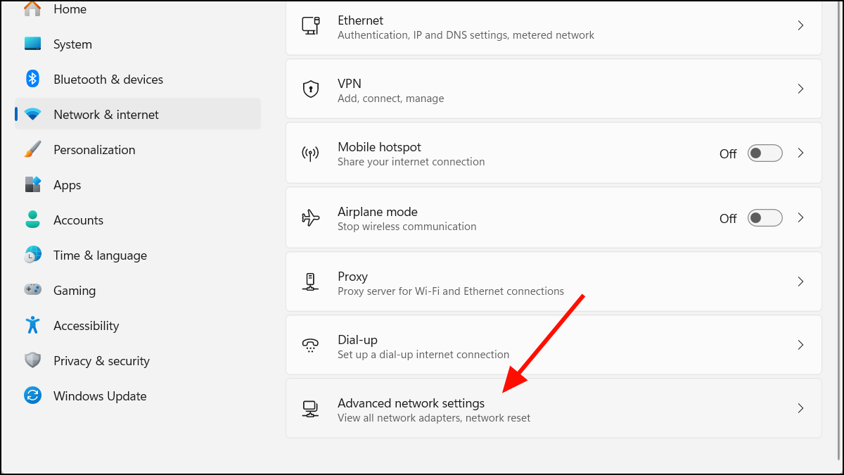 Step 1: Open the Settings app by pressing Win + I. Navigate to Network & Internet, then select Advanced network settings.