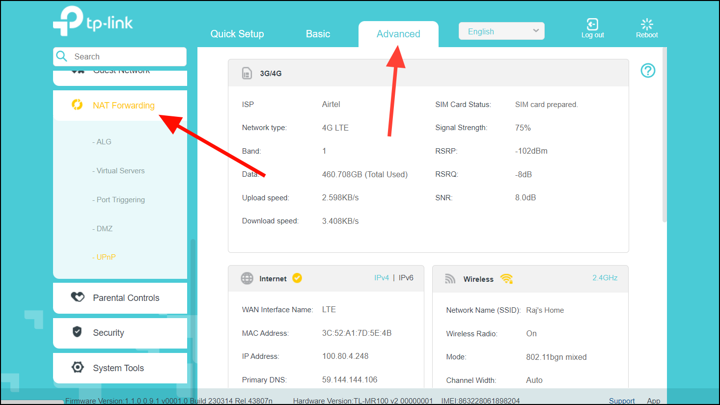 Step 1: Access your router's web interface and navigate to the Advanced settings.