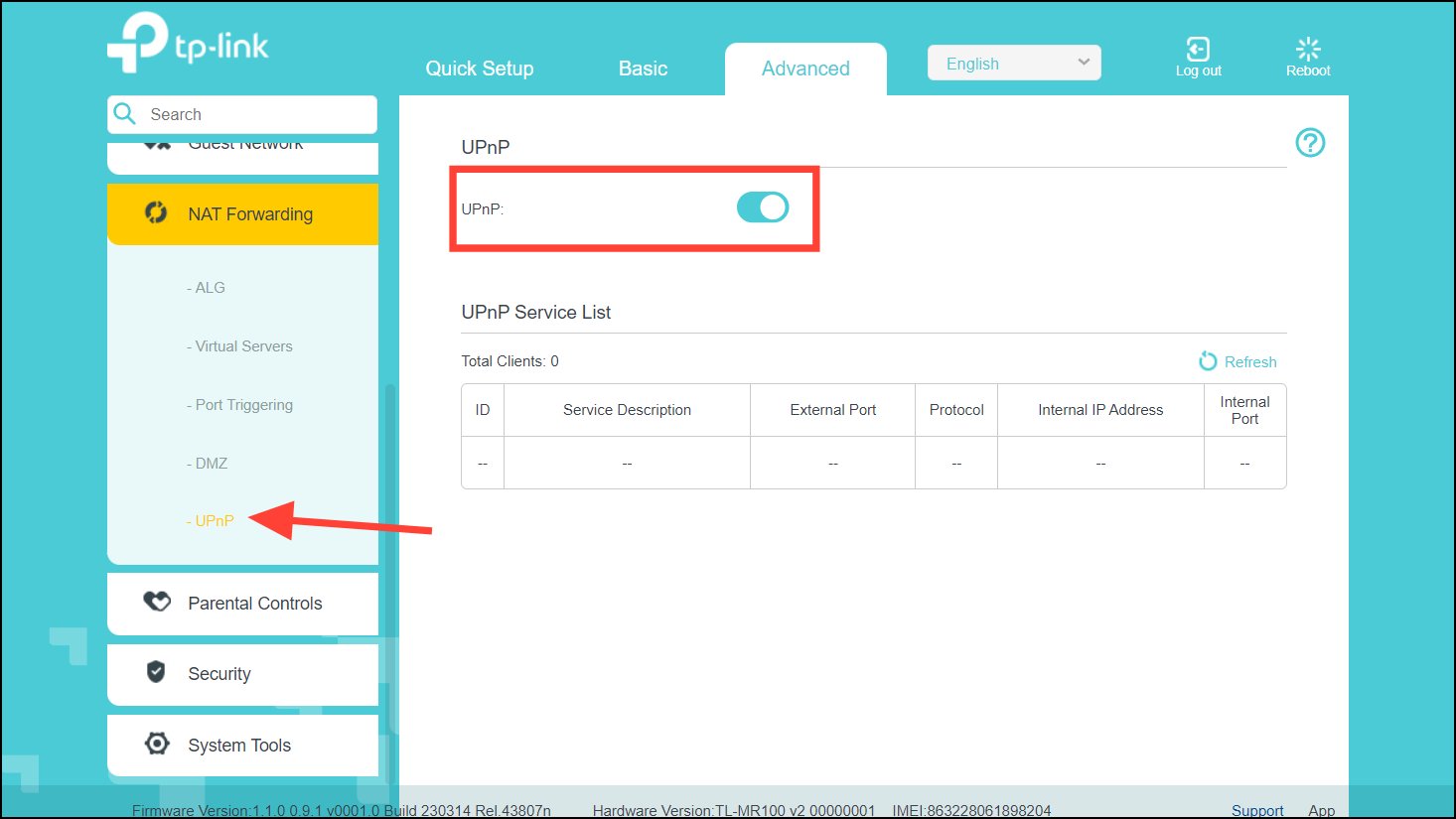 Step 1: After logging into your router's web interface, navigate to the UPnP settings. This is usually found under sections like Advanced or NAT Forwarding.
