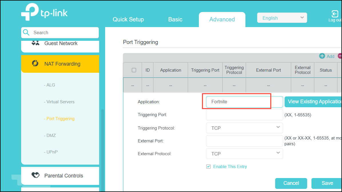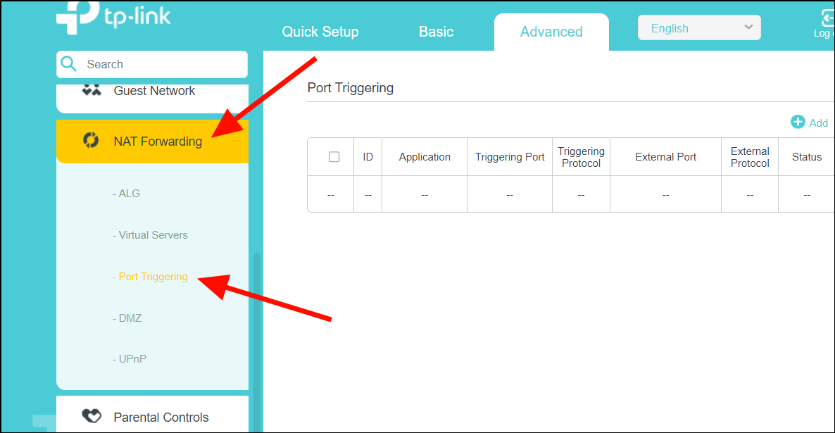 Step 3: In the left panel, select Port Forwarding or Port Triggering.
